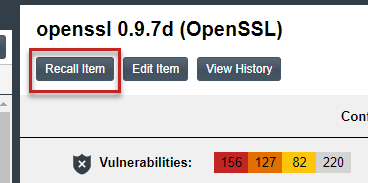 - In the pane header, click Recall Inventory Item .